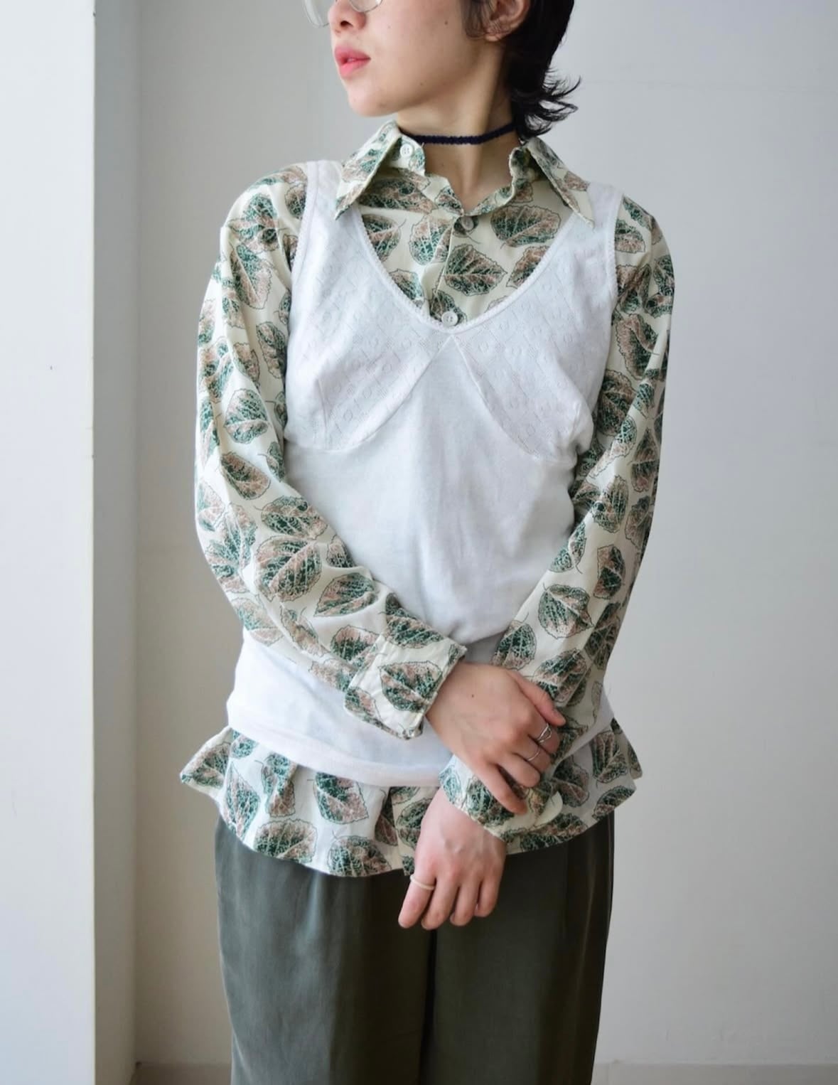 1970s “JC Penny” leaves pattern shirt