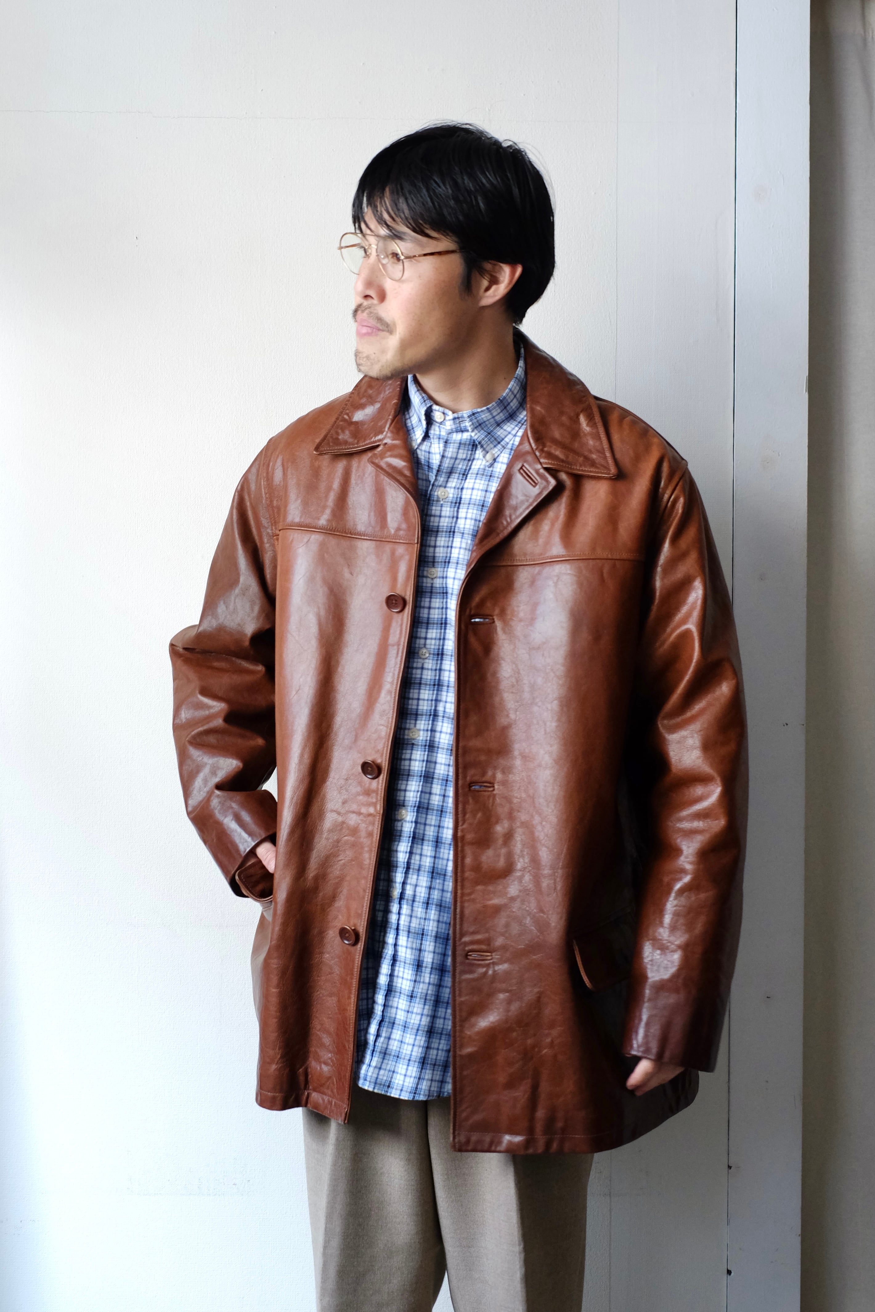 "BANANA REPUBLIC" leather car coat