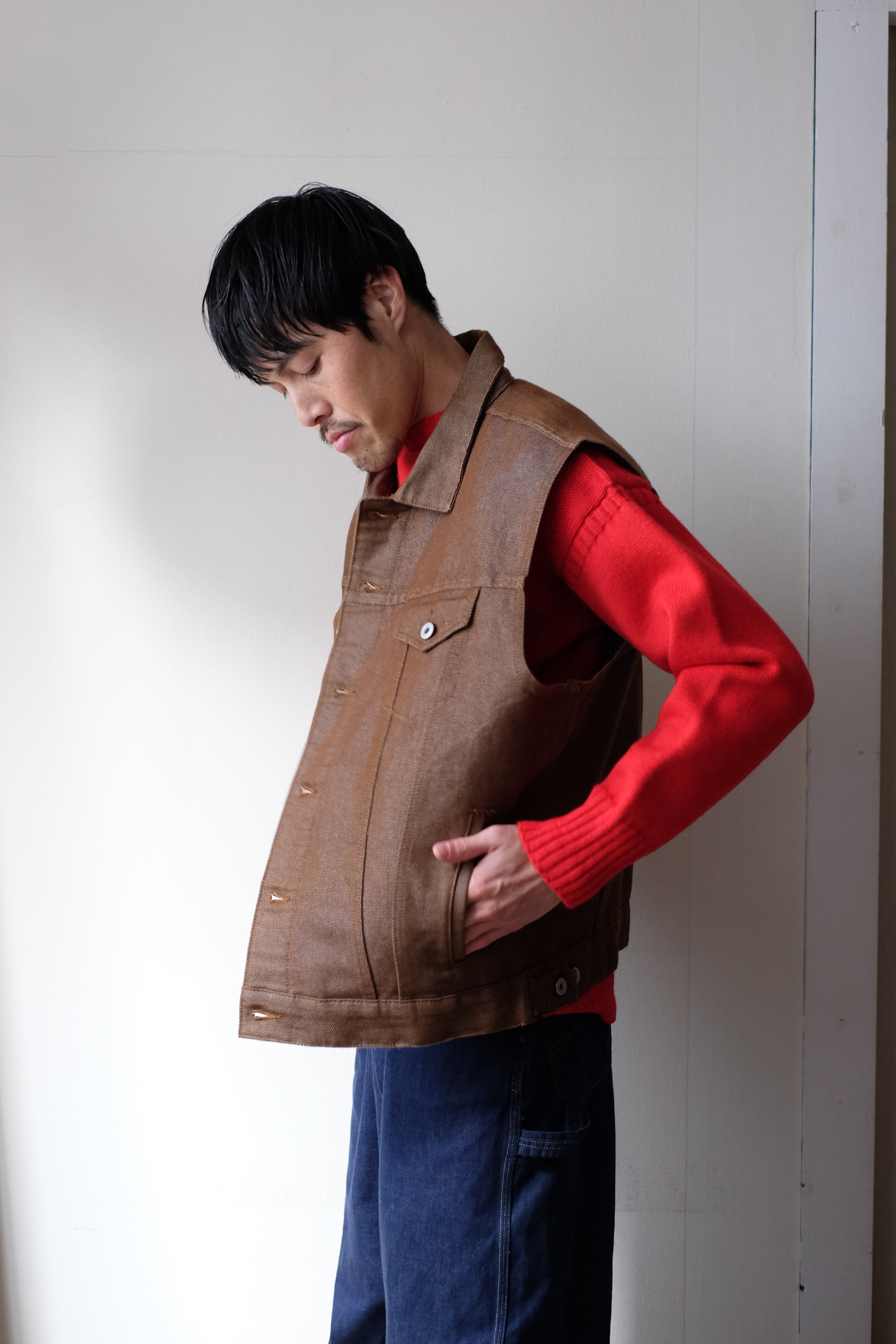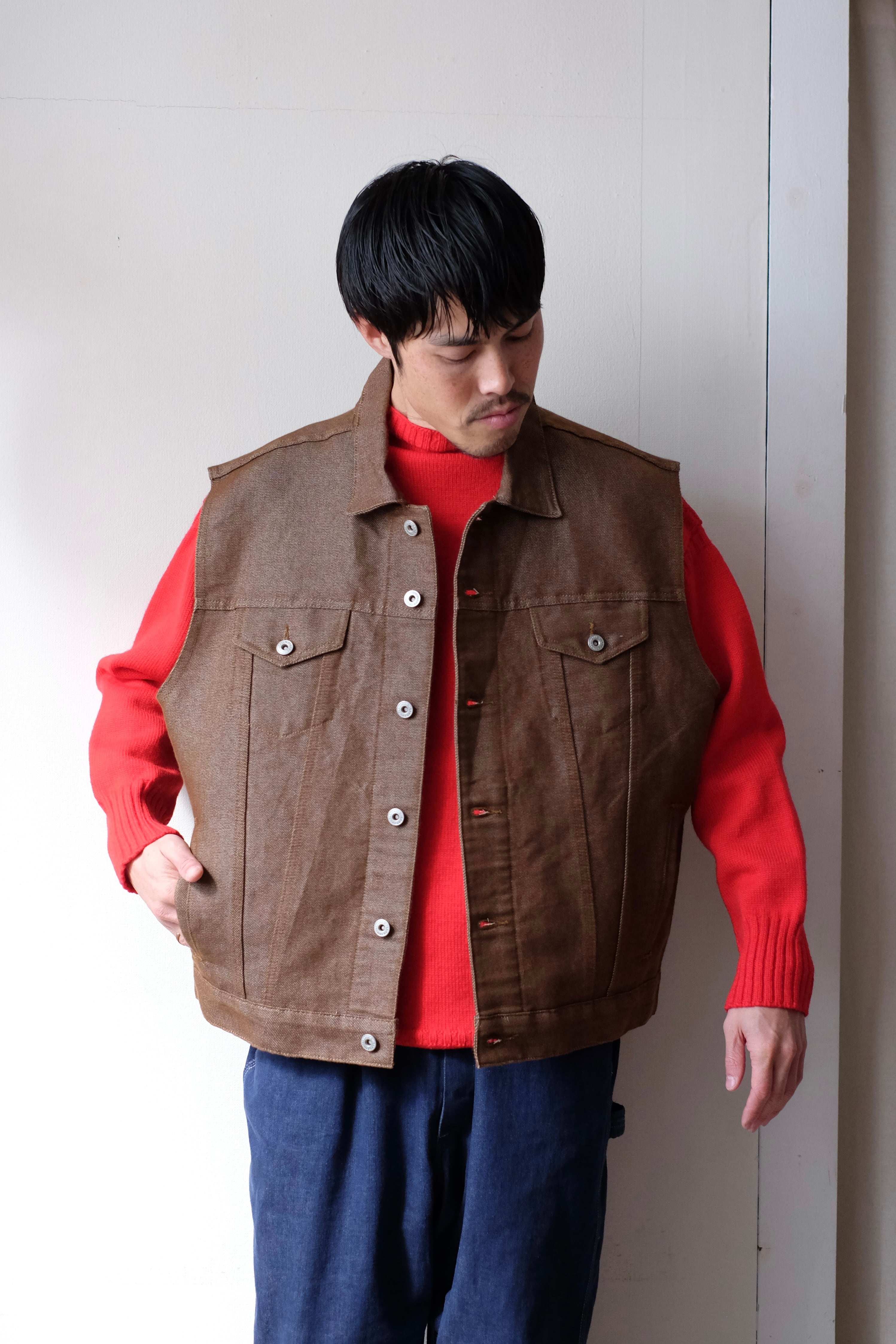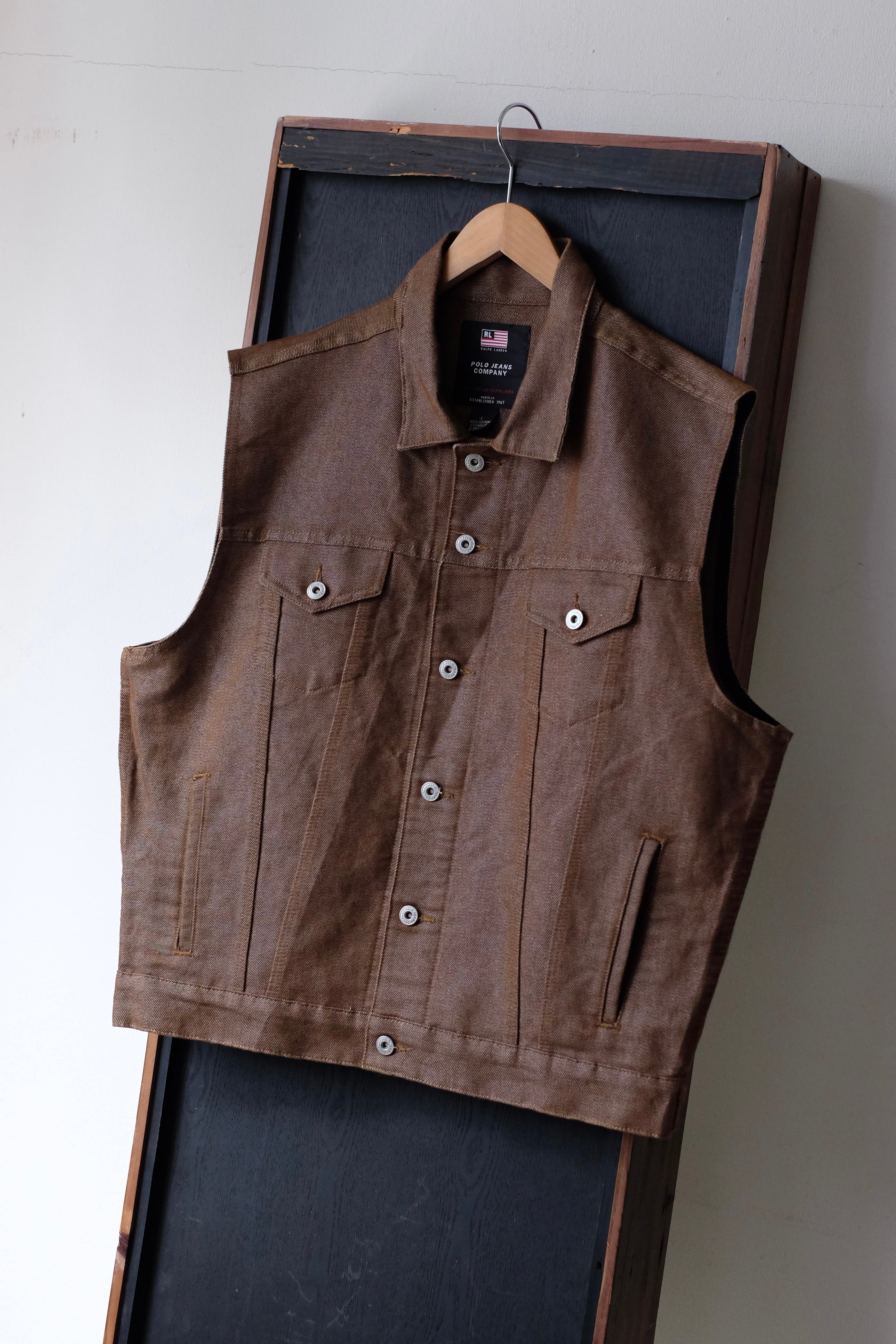 90s polo jeans brown denim vest
