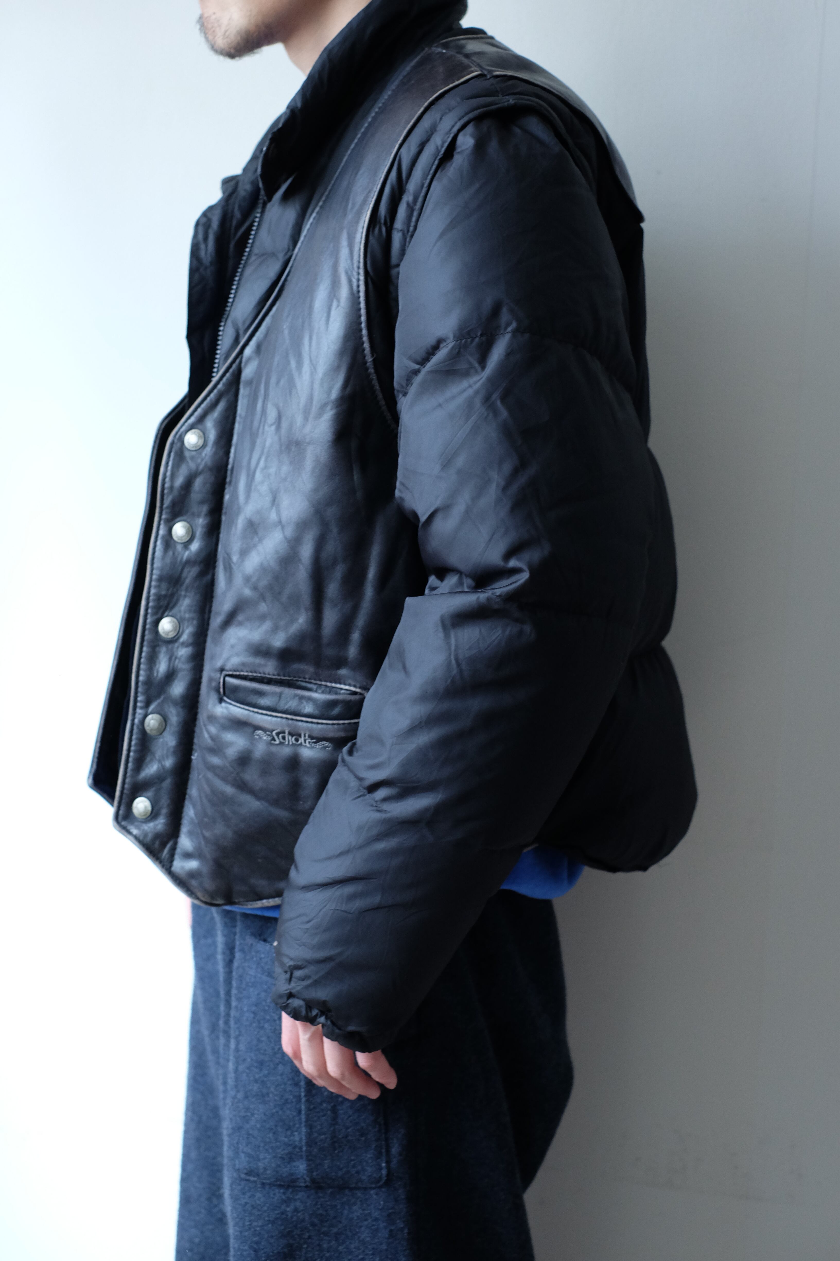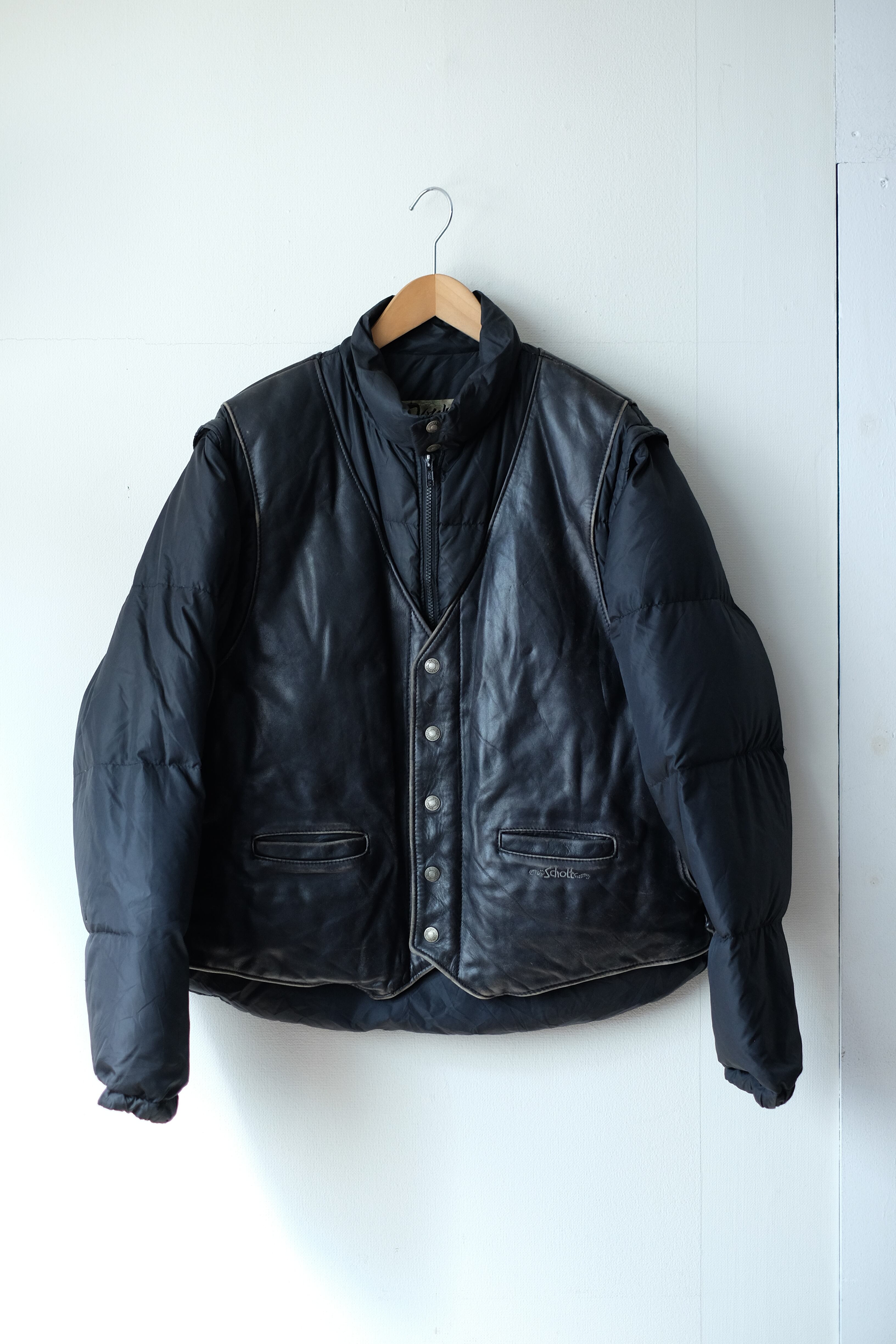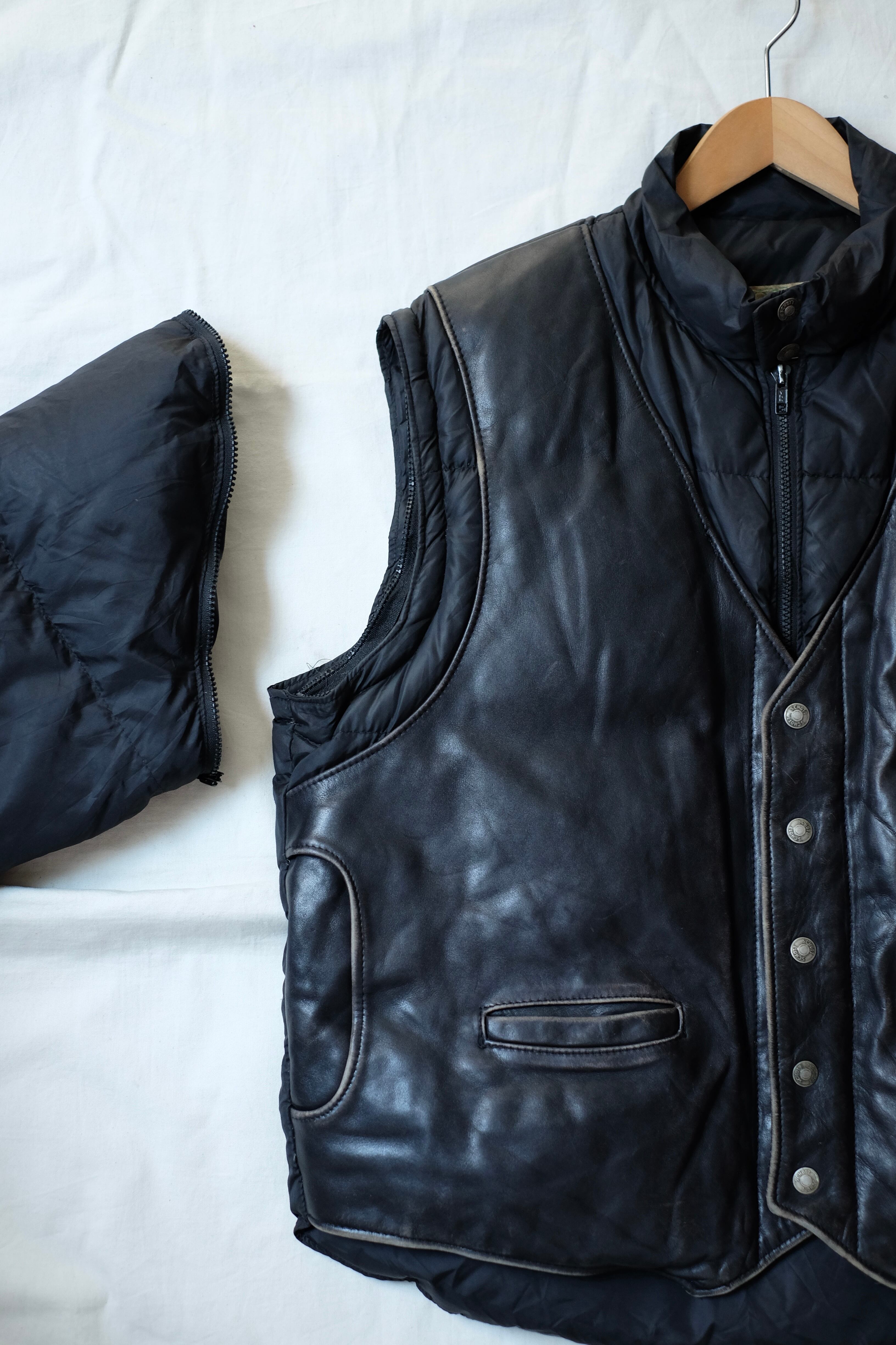 90s schott leather down detachable jacket