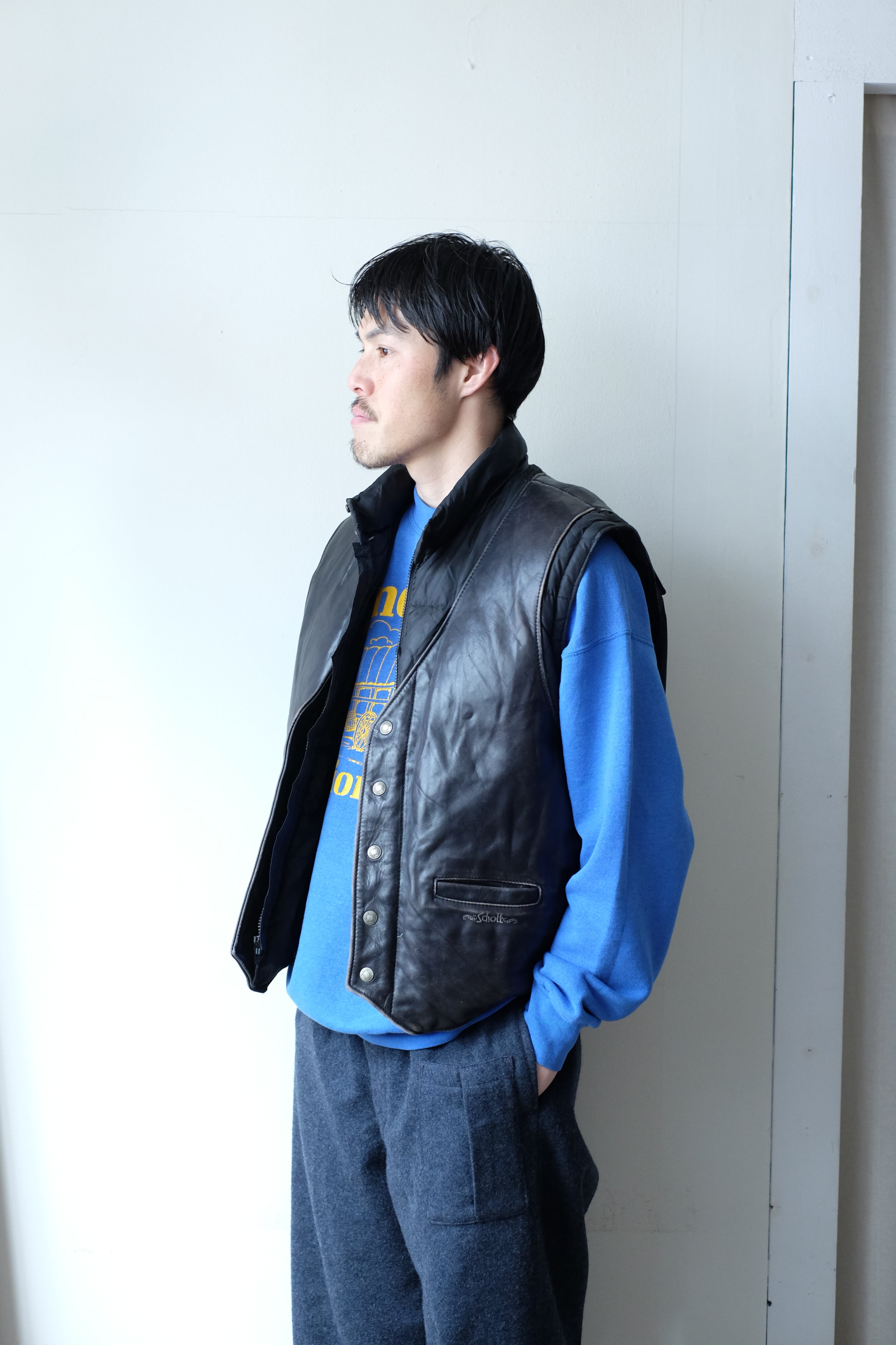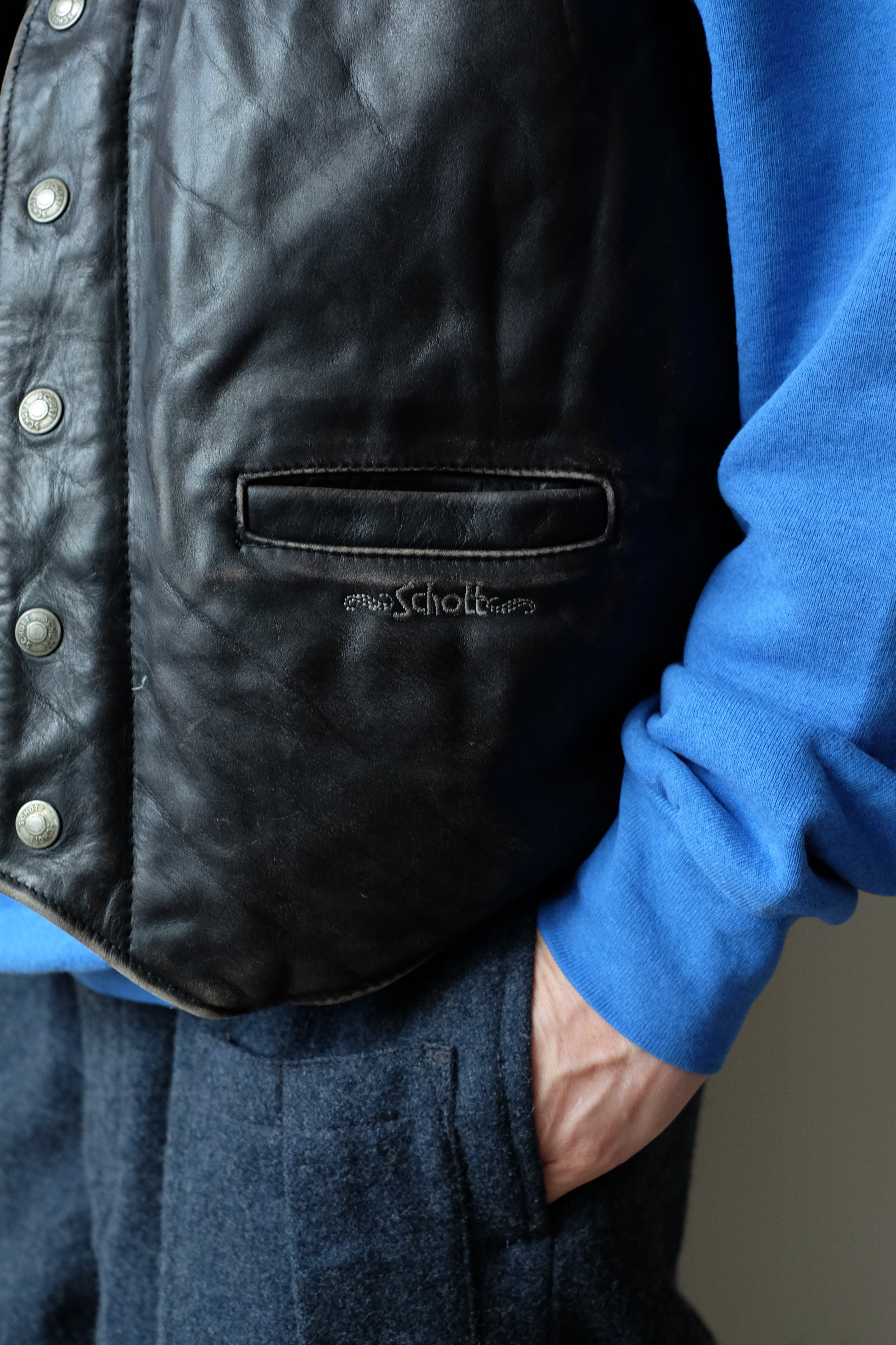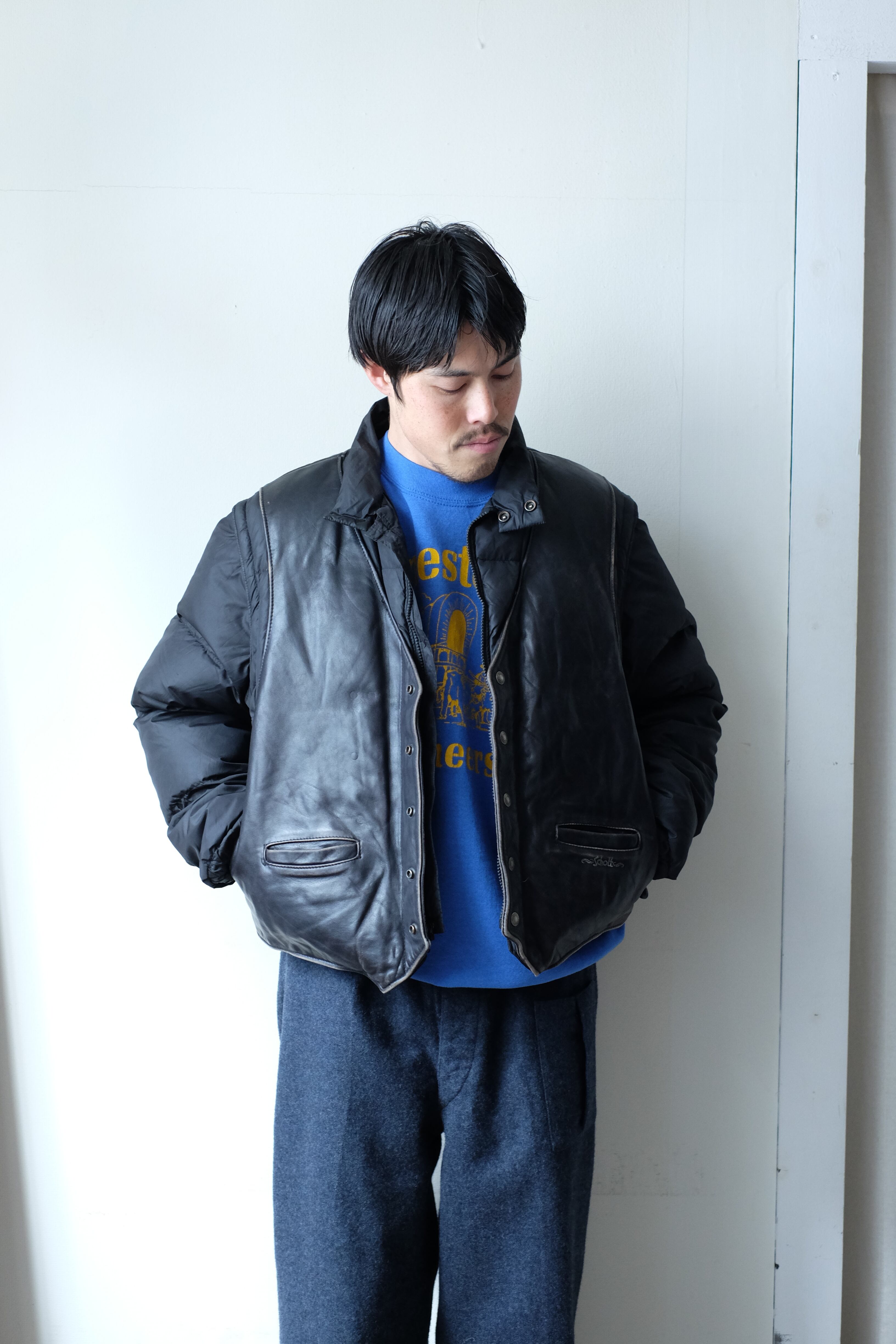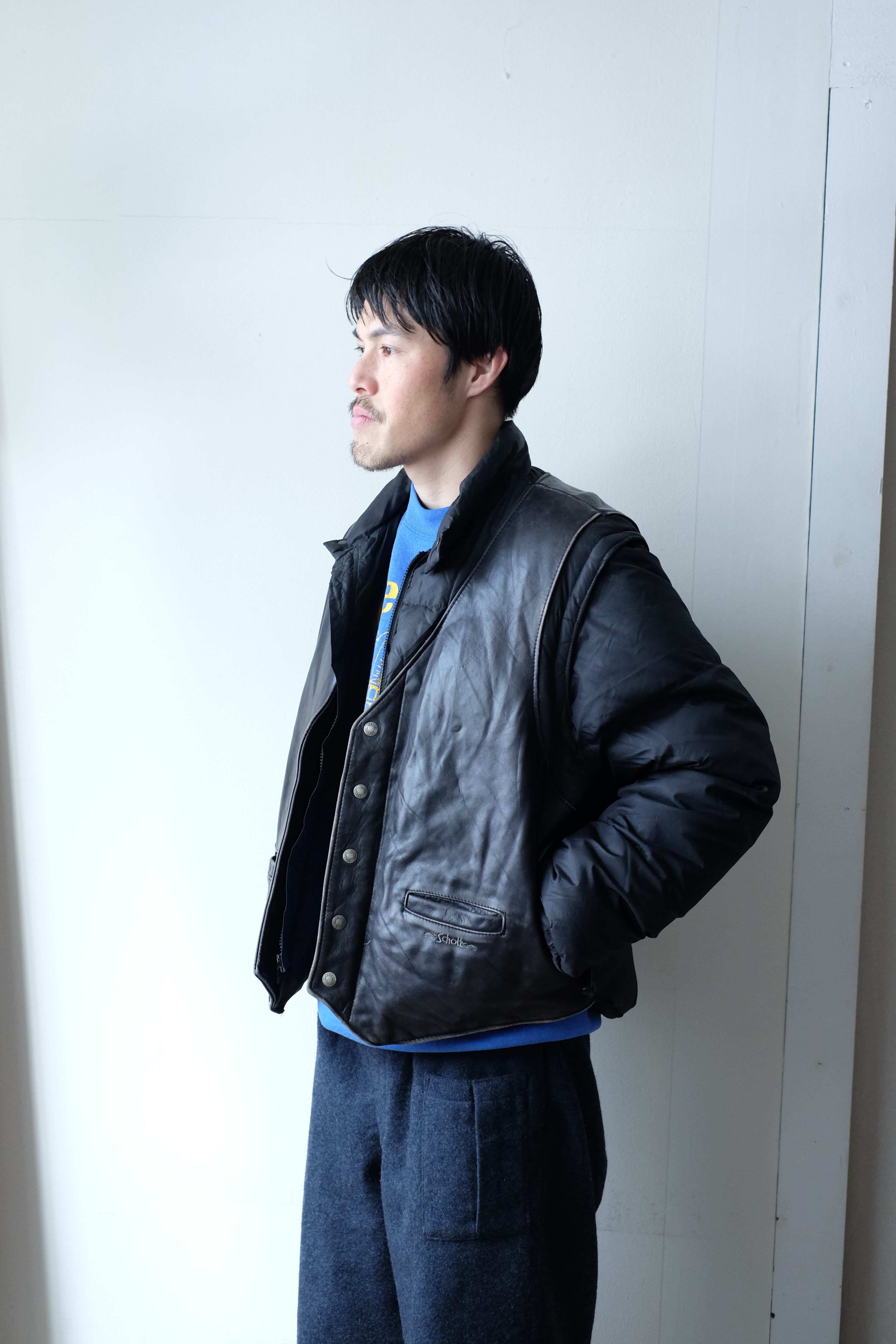 90s schott leather down detachable jacket