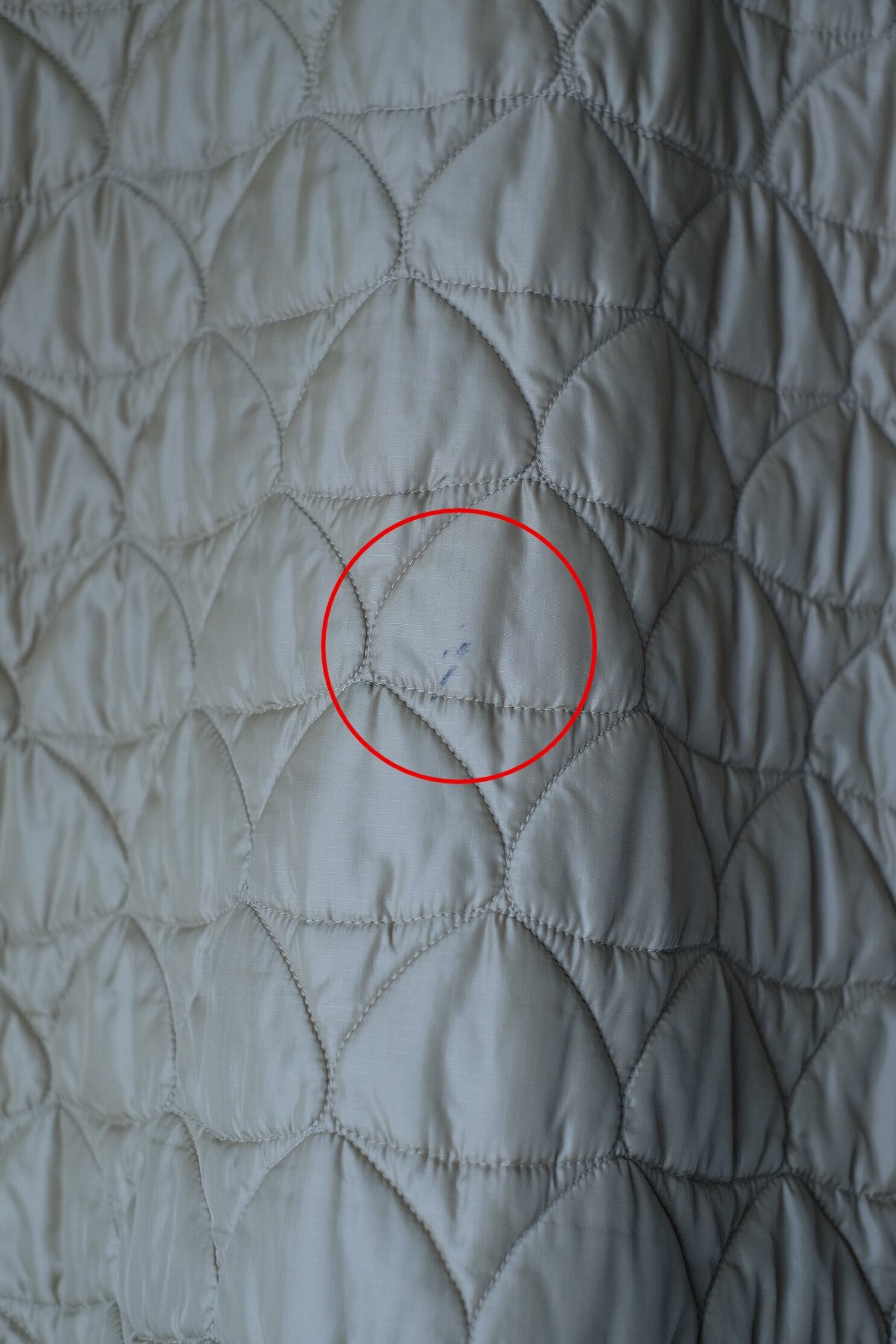 (例文)右の裾やサイドに引っ掛かりが見られます。(写真○枚目参照)
