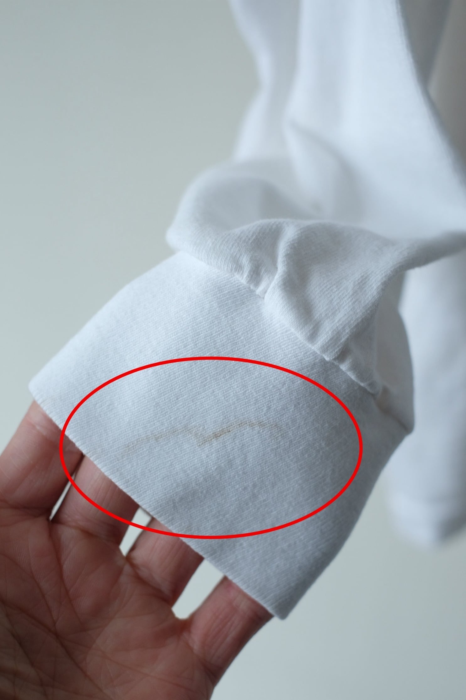 右袖口に汚れ、腹部に小穴がございます。