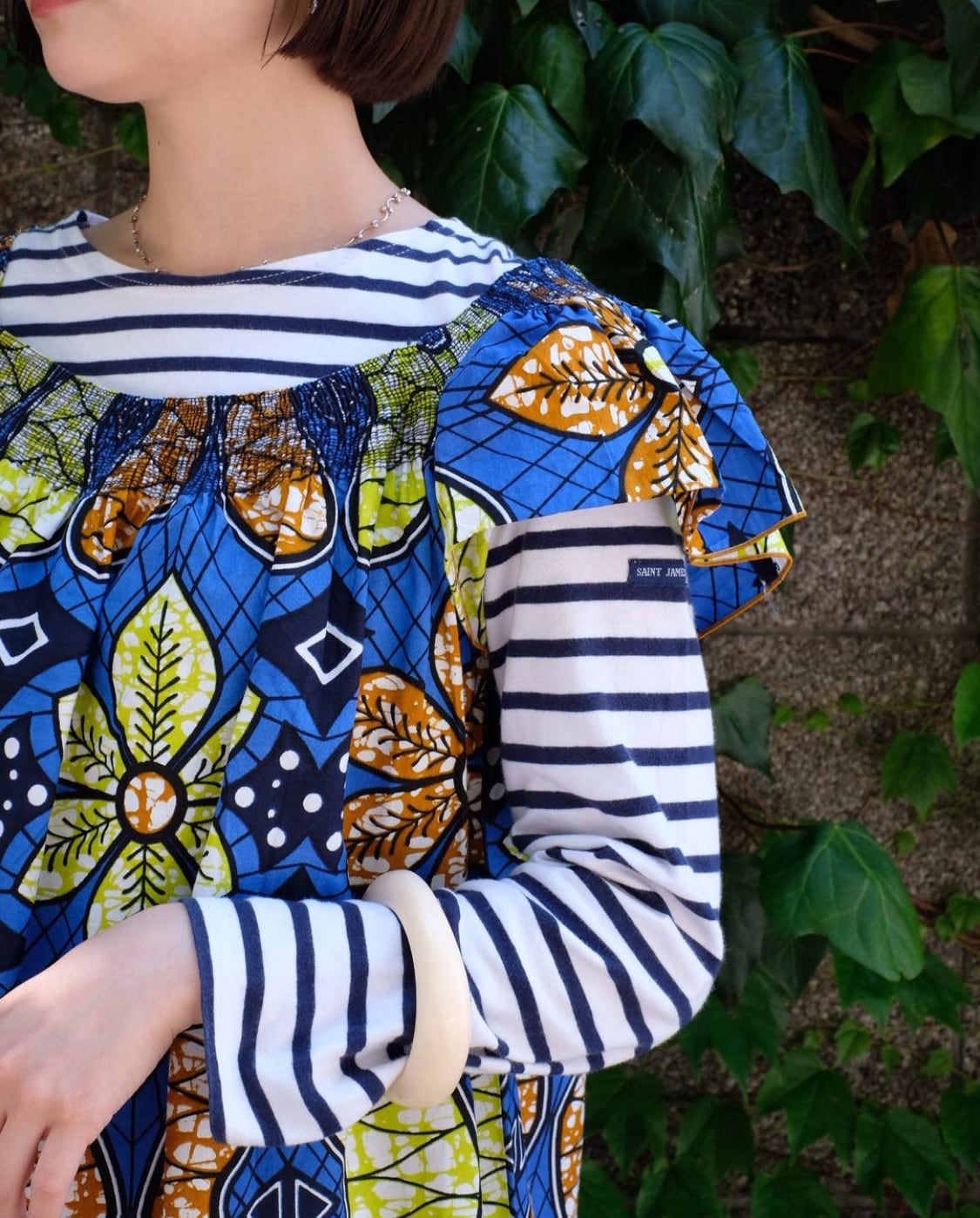 肩の内側に肌着の肩紐固定用のスナップボタンがついています。